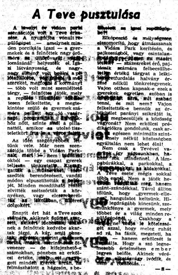 | Itt tartózkodása nem volt hosszú, 1968 februárjában a 22 AKÖV speciális járművén Szegedre az ottani vidámparkba szállították. |